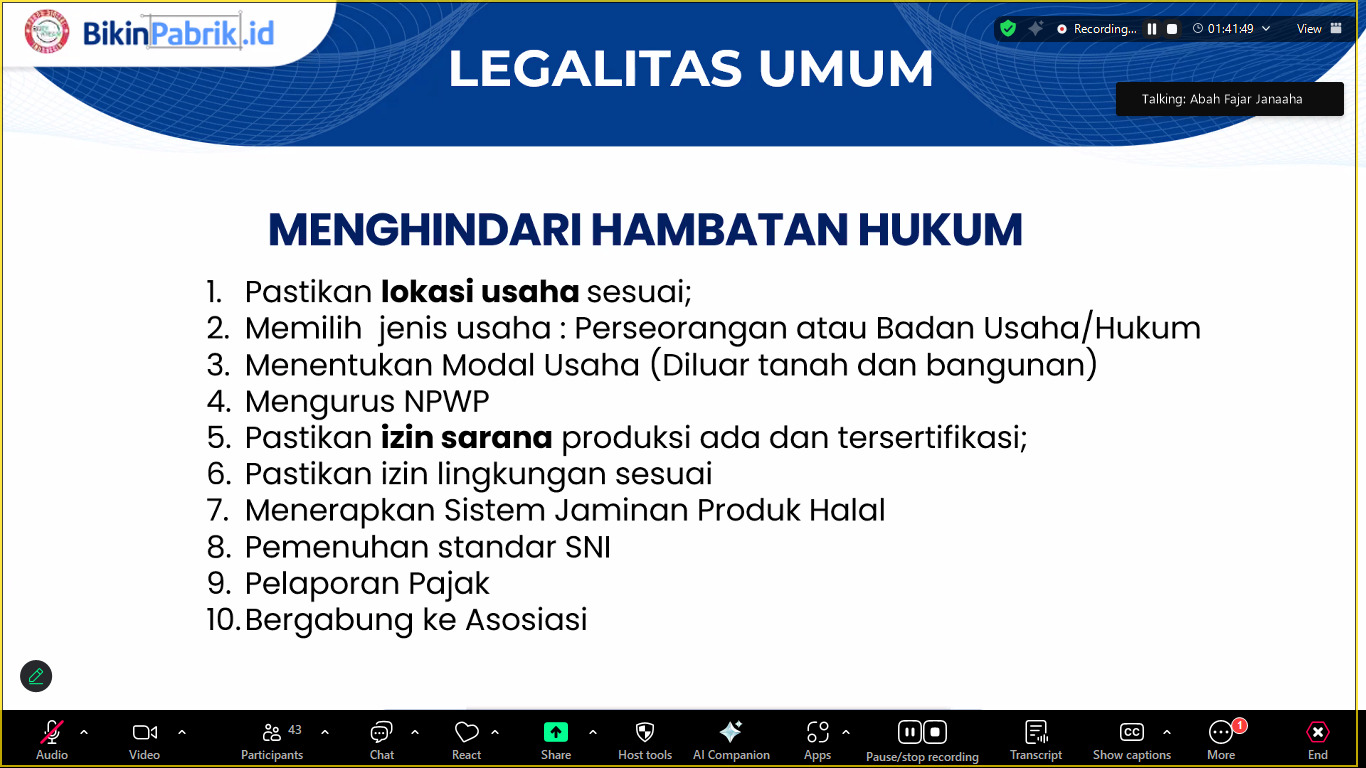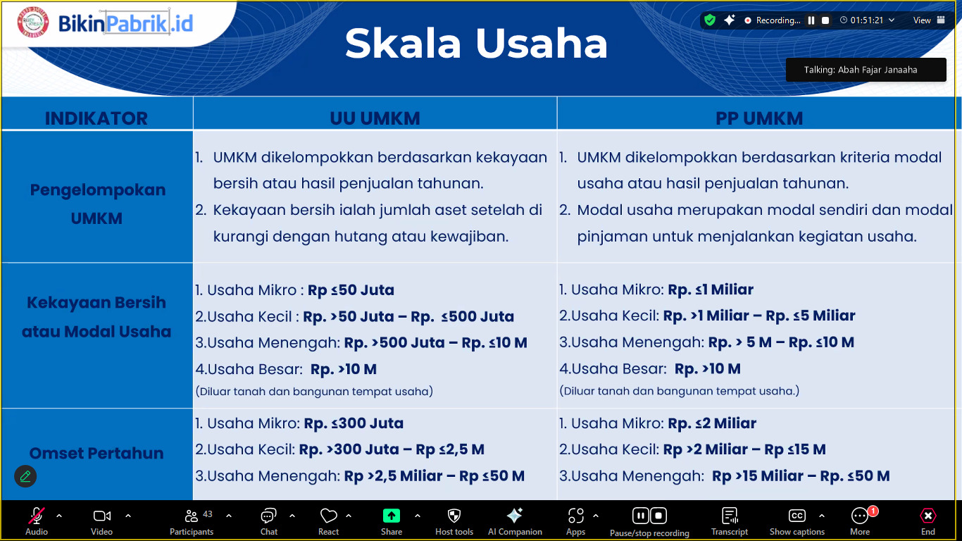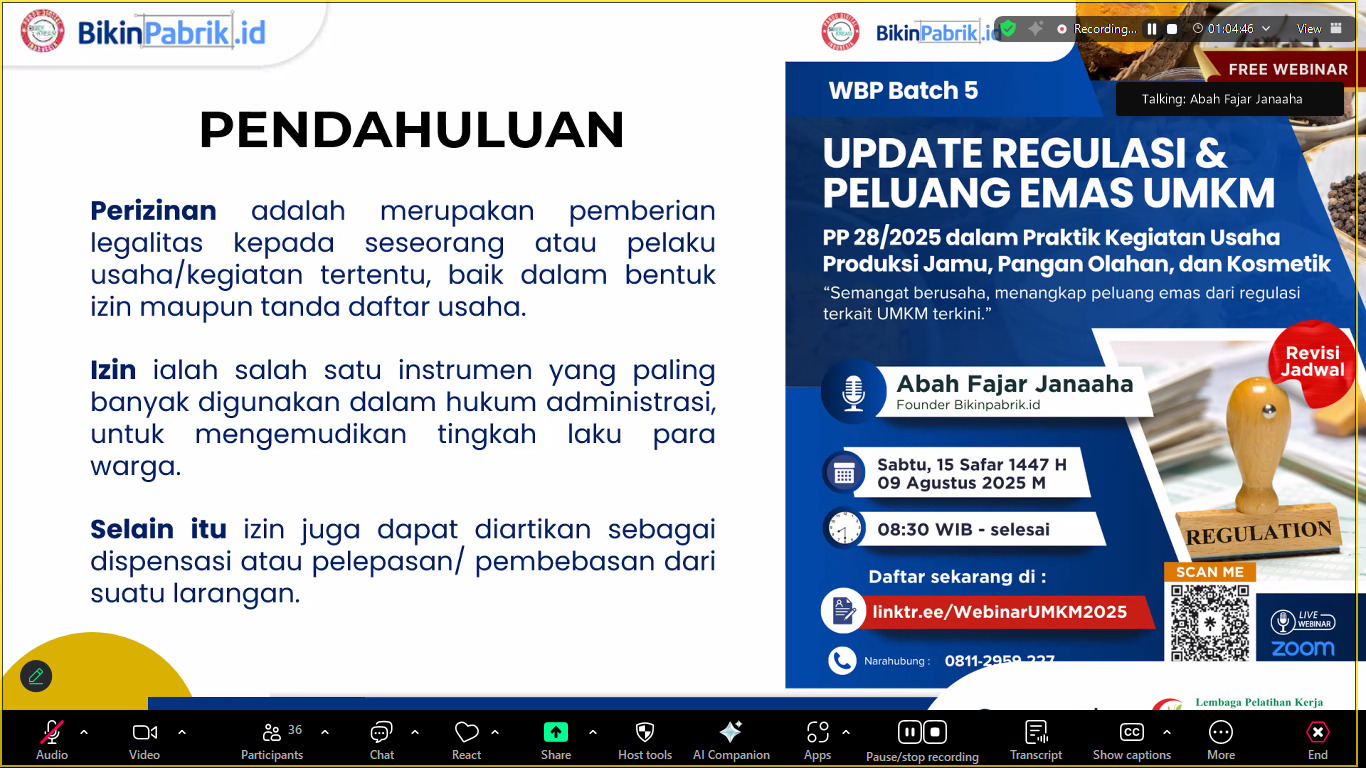 Agenda Webinar UMKM BikinPabrik.Id Batch 5 telah selesai dilaksanakan Sabtu, 15 Safar 1447H/9 Agustus 2025M.