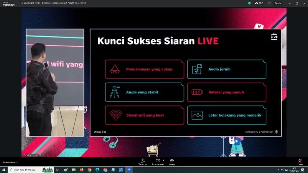 Terkait dengan sosial media, hari ini, Rabu, 15 April 2026, Direktur LPK Janaaha, Abah Fajar, mengikuti Seminar Nasional “BISA Bareng TikTok: Belajar dan Implementasi Skill Adaptif Bareng TikTok.” Dalam kegiatan ini Kementerian Ketenagakerjaan (Kemnaker) RI resmi menggandeng Tiktok Indonesia.