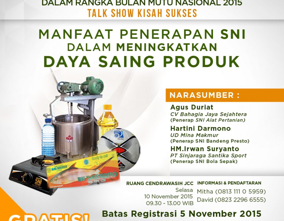 Talkshow KISAH SUKSES Penerap SNI Menjelang MEA yang berlaku di akhir tahun 2015, Pelaku industri lokal di Indonesia mau tidak mau harus siap dan harus menjadi […]